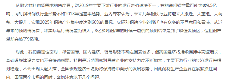 2019年耐火材料行業(yè)經(jīng)濟(jì)運(yùn)行中應(yīng)注意的幾個(gè)問(wèn)題